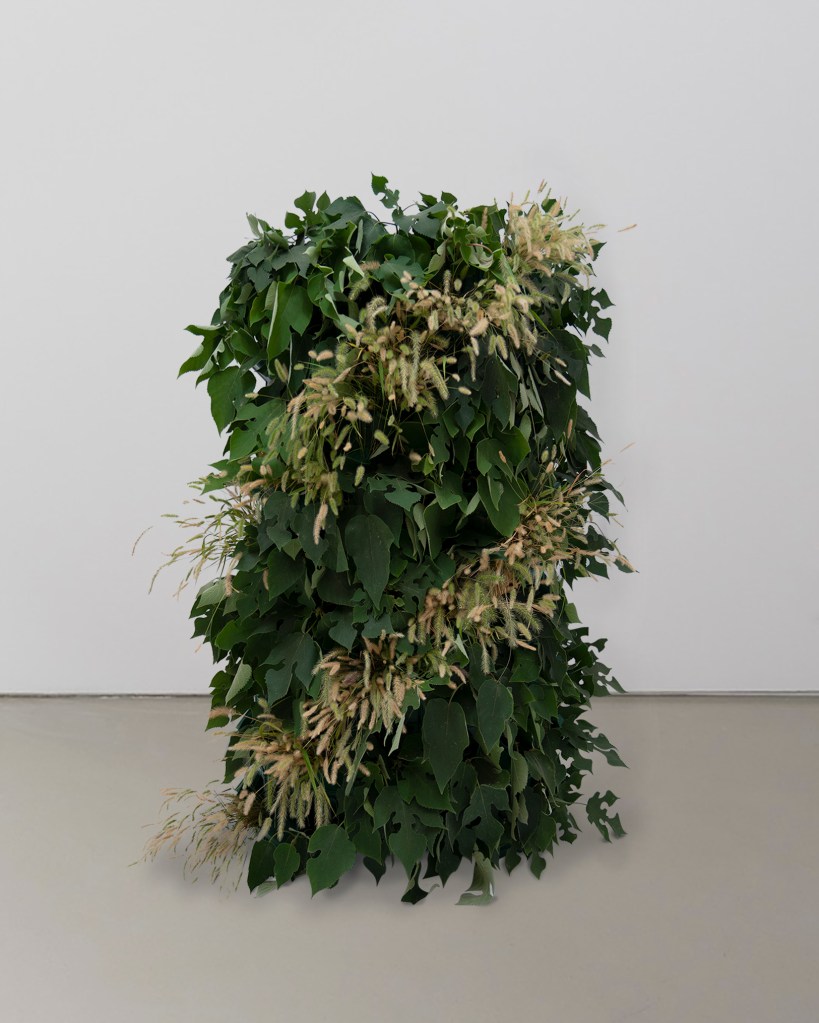 A floral pillar crafted from common wild grasses native to the South, imitating municipal landscaping aesthetics.